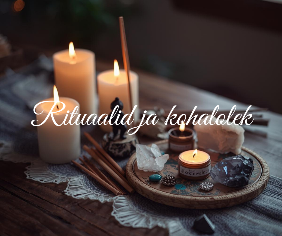 Käsitööna valminud küünlad ja rituaalsed esemed, mis toetavad rahulikku rütmi ja teadlikku kohalolu.
